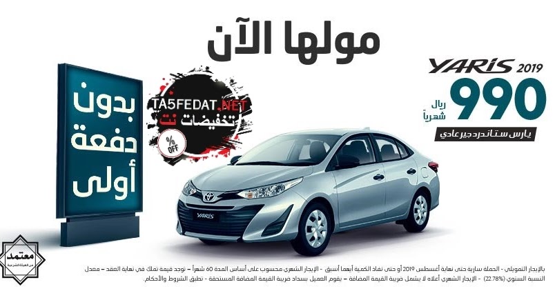 عروض تويوتا عبداللطيف جميل Toyota Alj على سيارة يارس وكورولا 2019 للتمويل التأجيري